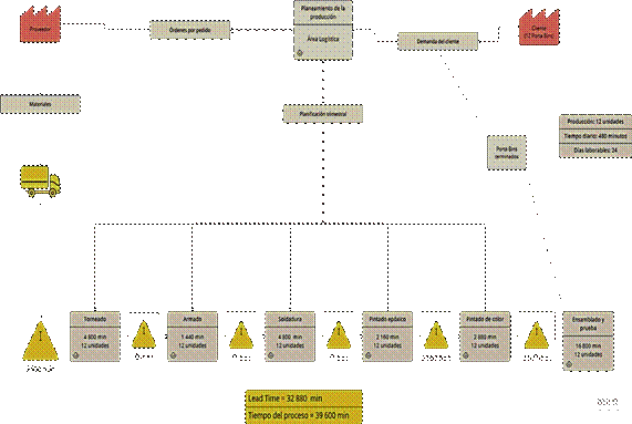 Mapa de flujo de valor (VSM) preliminar del proceso de fabricaci n de Porta Bins