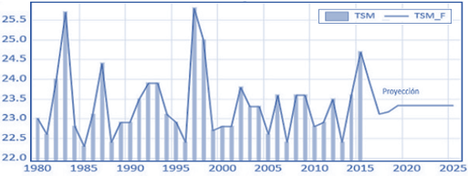 Figura 5. Pronóstico de TSM en base al modelo ARMA.