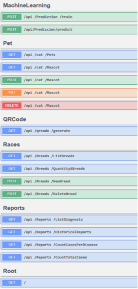 Figure 5. API endpoints for machine learning, QR code generation, breed classification, and reporting.