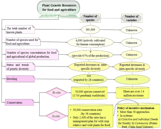Agrobiodiversity Agrobiodiversity is an important subset of biodiversity (Joshi et al., 2020b), which refers to the variety and variability of living organism that contribute to food production (Zimmerer, 2015), including genetic resources, plant and animals, important for food security, in addition to providing medicines, fibre, wood fuel, and other ecosystem functions (Brush, 2000). | Genetic Resources for Food and Agriculture These are genetic materials that contain the functional unit of inheritance of fundamental biological organisms for feeding mankind (Sonnino, 2017). It required a correct availability of plant breeders because they are the drivers of genetic improvement and advances in biotechnology (Khoury et al., 2015; Aubry, 2023). |
