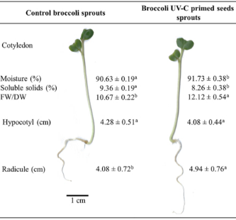Overall, this approach presents a promising tool for enhancing the nutraceutical quality of sprouts. Future studies should focus on optimizing UV-C radiation conditions to maximize antioxidant benefits while minimizing potential adverse effects. Additionally, the applicability of this technique should be evaluated across different crops and environmental conditions.